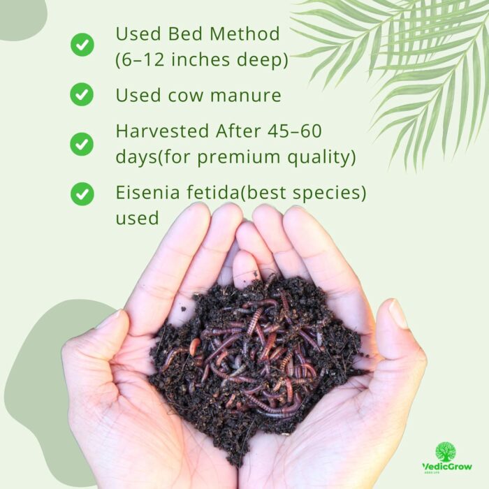 • ECO-FRIENDLY & SUSTAINABLE FERTILIZER— Crafted using organic waste materials, VedicGrow Vermicompost helps reduce landfill waste while supporting sustainable gardening practices, making it ideal for eco-conscious gardeners and organic farmers.